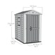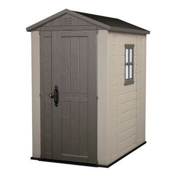 Met het Keter Factor 46 tuinhuis geef je je tuin een vaste plek voor spullen die je graag uit de regen houdt. Het huisje heeft brede deuren en een schuin aflopende vloer, zodat je er makkelijk met een kruiwagen of grasmaaier in kunt. Binnen zorgen een raam, ventilatieroosters en een transparant dakdeel voor licht en lucht. Het tuinhuis is gemaakt van weerbestendig kunststof en verstevigd met aluminium profielen. Je zet het makkelijk zelf in elkaar met standaard gereedschap. De deuren zijn af te sluiten met een hangslot (niet meegeleverd).