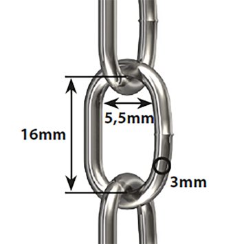 Ketting verzinkt 1 meter 3X16X12MM. De ketting is gemaakt van verzinkt staal en uitermate geschikt voor het bevestigen van materialen en decoratieve doeleinden.