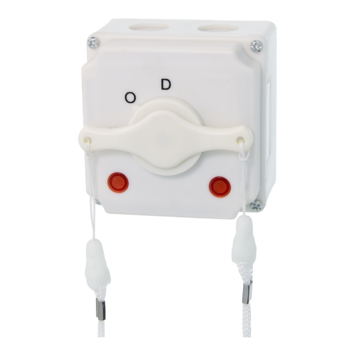 Met deze keuzetrekschakelaar kun je 2 apparaten op 1 elektragroep aansluiten. Deze grijze keuzetrekschakelaar is spatwaterdicht (beschermingsklasse IP44) en is dus te gebruiken in vochtige ruimtes. Dus ideaal voor het aansluiten van een wasmachine en wasdroger in badkamer.