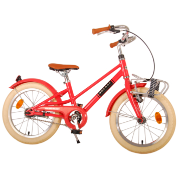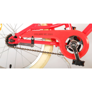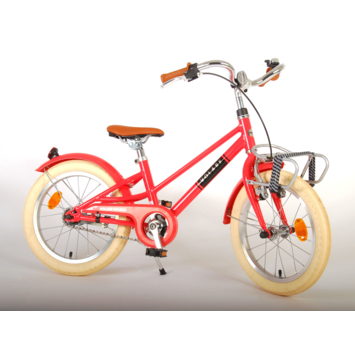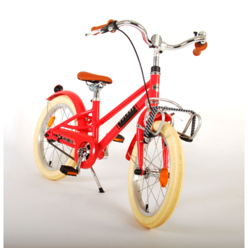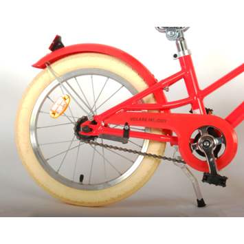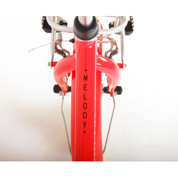 De prachtige kinderfiets Melody is van superieure kwaliteit. Het frame van deze fiets is gemaakt van ultra licht aluminium, slechts 12 kilo! Deze fiets met dit moderne frame, de stoere pistol type kettingkast en praktische voordrager is een must have voor iedere hippe meid. Om vaart te kunnen minderen heeft de fiets een veilig Aluminium V-brake systeem met een handrem en terugtraprem. Om de fiets makkelijk neer te kunnen zetten heeft hij een sterk standaard. De handvaten zijn van Kraton, een heerlijk zacht rubber, waardoor deze lekkerder in de hand liggen en extra comfort bieden. De zadelbuis is extra laag met een extra lange zadelpen, waardoor de fiets met uw kind mee kan groeien. Bovendien is het stuur in hoogte verstelbaar en heeft de fiets voor- en achterreflectoren.. De fiets is voor 85% afgemonteerd. De 16 inch luchtbanden maken dat deze fiets geschikt is voor meiden tussen de 4 en 6 jaar oud met kledingmaat 104-110.