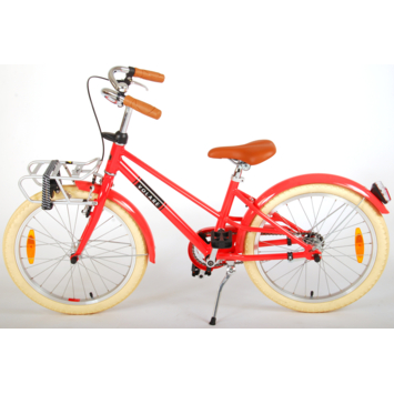 De prachtige kinderfiets Melody is van superieure kwaliteit. Het frame van deze fiets is gemaakt van ultra licht aluminium, slechts 13,5 kilo! Deze fiets met dit moderne frame, de stoere pistol type kettingkast en praktische voordrager is een must have voor iedere hippe meid. Om vaart te kunnen minderen heeft de fiets een veilig Aluminium V-brake systeem met handrem en terugtraprem. Om de fiets makkelijk neer te kunnen zetten heef hij een sterk standaard. De handvaten zijn van Kraton, een heerlijk zacht rubber, waardoor deze lekkerder in de hand liggen en extra comfort bieden. De zadelbuis is extra laag met een extra lange zadelpen, waardoor de fiets met uw kind mee kan groeien. Daarnaast heeft de fiets een aluminium smart control systeem, dat ervoor zorgt dat het stuur begrensd is (niet in hoogte verstelbaar). Bovendien heeft de fiets voor- en achterverlichting. De fiets is voor 85% afgemonteerd. De 24 inch luchtbanden maken dat deze fiets geschikt is voor meiden tussen de 8 en 10 jaar oud met kledingmaat 128-140. Op deze hippe kinderfiets Melody wil iedere meid naar school fietsen!