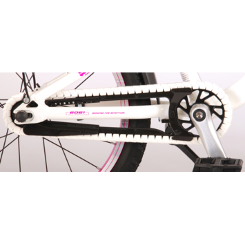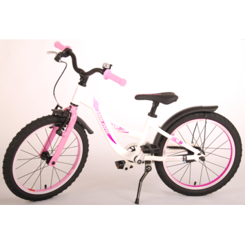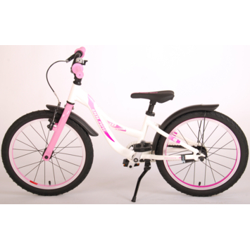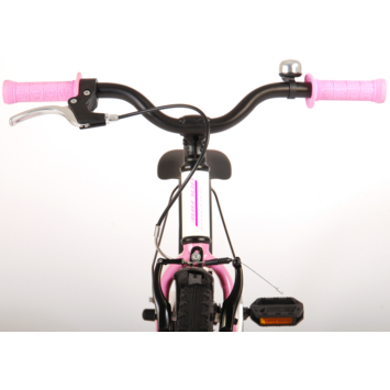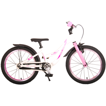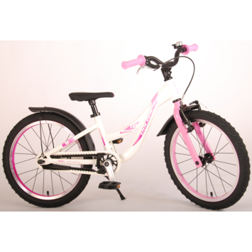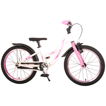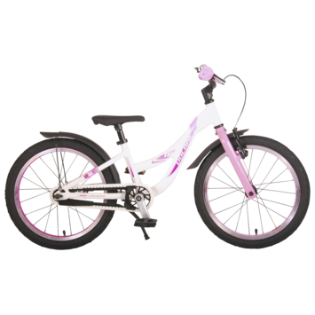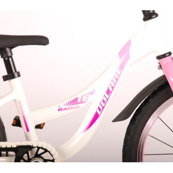 De prachtige Volare Glamour fietsenreeks is van superieure kwaliteit. Het frame van deze fiets is gemaakt van ultra licht aluminium, slechts 6,5 kilo!. Ook onderdelen zoals het stuur en de fietsbel zijn uit aluminium vervaardigd. Om vaart te kunnen minderen heeft de fiets een veilig Aluminium V-brake systeem met zowel een handrem als terugtraprem. De fiets heeft geen zijwielen, maar een praktisch en sterk aluminium standaard. De handvaten zijn van Kraton, een heerlijk zacht rubber, waardoor deze lekkerder in de hand liggen en extra comfort bieden. De zadelbuis is extra laag met een extra lange zadelpen, waardoor de fiets met uw kind mee kan groeien. Daarnaast heeft de fiets een aluminium smart control systeem, dat ervoor zorgt dat het stuur begrensd is (niet in hoogte verstelbaar). De stoere kettingkast is een grote toevoeging voor het krachtige doch glamoureuze design van deze fiets met zijn strakke aluminium frame en roze watertransfer stickers. De fiets is voor 85% afgemonteerd. De 18 inch luchtbanden maken dat deze fiets geschikt is voor meiden tussen de 4 en 7 jaar oud met kledingmaat 104-116. Deze Volare Glamour kinderfiets inspireert ieder meisje om haar omgeving te ontdekken!