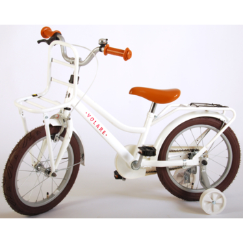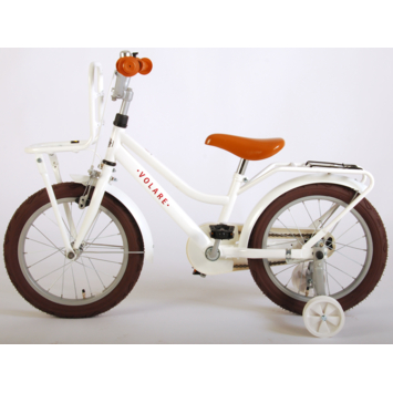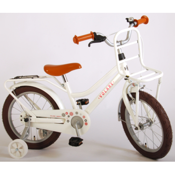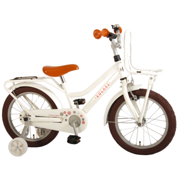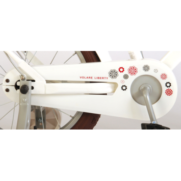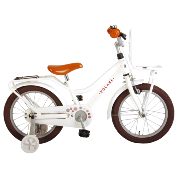 Volare Liberty 16 inch kinderfiets. Deze prachtige Volare Liberty kinderfiets is geliefd onder alle jonge meiden. De achterdrager van de fiets is geïntegreerd in het frame, waardoor de fiets een strak en modern uiterlijk heeft. Het zadel en stuur zijn beide in hoogte verstelbaar, dit zorgt ervoor dat de fiets met uw kindje mee kan groeien. Met de handrem en terugtraprem kan vaart worden geminderd. De fiets beschikt over zowel een voordrager als achterdrager, zodat ieder meisje haar spulletjes gemakkelijk mee kan nemen. Het zachte zadel en de handvaten zorgen voor extra comfort en ter bescherming van de kleine vingertjes is de kettingkast gesloten. Bovendien heeft de fiets een fietsbel om aan iedereen te kunnen laten weten dat je de hoek om komt. Met de afneembare zijwieltjes kan ieder kind snel leren fietsen. Deze fiets is voor 95% afgemonteerd, waardoor hij al bijna fietsklaar is. Zoefff, daar gaat je kindje, naar zijn vriendjes en vriendinnetjes!