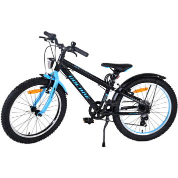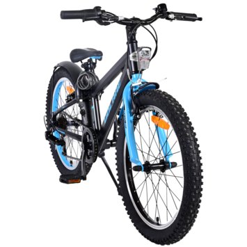 Ontdek de wereld van avontuurlijk fietsen met de Volare Rocky 20 inch kinderfiets, verkrijgbaar bij Karwei! Veiligheid is gegarandeerd met twee handremmen, reflectoren in de wielen, voor- en achterop de fiets, verlichting, een handig slot en een leuke bel. Geniet van het comfort van het extra lichte aluminium frame, het zachte zadel en de stoere extra brede banden. Deze satijnzwarte fiets met blauwe accenten beschikt over 6 versnellingen en een standaard voor extra gemak. Met een extra lange zadelpen groeit de fiets mee met je kind, zodat je er nog vele kilometers mee kunt maken!