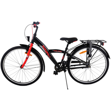 Ontdek de Volare 26 inch Thombike bij Karwei - een combinatie van topkwaliteit en modern design! Veiligheid staat voorop met een handrem, terugtraprem en batterijverlichting voor en achter. Met een leuke bel en reflectoren in de wielen ben je altijd goed zichtbaar en hoorbaar onderweg. Deze mooie zwarte Volare fiets met rode accenten biedt niet alleen veiligheid, maar ook comfort, met een luxe zacht zadel, 3 versnellingen van Shimano, extra zachte handvaten, een handige achterdrager en een stevig frame dat tegen een stootje kan. Met een standaard en een sterk slot is deze fiets compleet uitgerust. Dankzij de extra lange zadelpen groeit de fiets nog langer mee met je kind, en ook het stuur is in hoogte verstelbaar voor optimaal comfort.