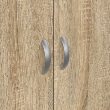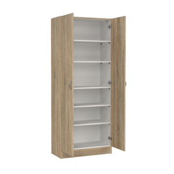 Achter de twee deuren vind je vijf praktische legplanken. Daarmee kun je kleding, beddengoed, schoenen of accessoires overzichtelijk opbergen. Dankzij het compacte formaat van 170 cm hoog en 70 cm breed neemt de kast weinig plek in, terwijl je toch veel spullen kwijt kunt.