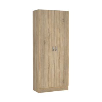 De kledingkast 2-deurs Fabian eiken hout 170 x 70 x 35 cm is een compacte kast die praktische bergruimte combineert met een warme uitstraling. Dankzij de eiken kleur en het strakke ontwerp past deze kast moeiteloos in uiteenlopende interieurs. Ideaal voor in de slaapkamer, hal of werkkamer waar je wat extra ruimte nodig hebt.