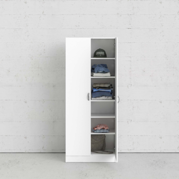 De kledingkast 2-deurs Fabian wit hout 170 x 70 x 35 cm is een praktische en compacte oplossing voor extra opbergruimte in huis. De strakke witte uitvoering maakt de kast tijdloos en gemakkelijk te combineren met diverse woonstijlen. Dankzij het slanke formaat past Fabian in vrijwel elke ruimte, van slaapkamer en hal tot werkkamer.