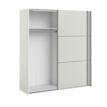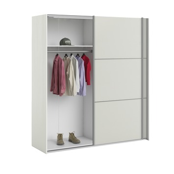 De garderobekast Janneke met de afmetingen (hxbxd) 202x182x64 cm is uitgevoerd in een witte kleur. De kast heeft schuifdeuren en wordt standaard geleverd met een roede voor een hanggedeelte en legplanken. Het interieur van de kast is uit te breiden met legplanken en ladenblok om de kast geheel naar eigen wens in te delen. Voor de veiligheid raden wij aan de kast te bevestigen tegen de wand.
