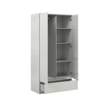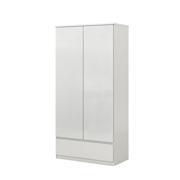 Kledingkast Nevada beschikt over 2 deuren, 3 planken 1 roede en 1 lade. Er is dus genoeg ruimte om kleding op te bergen. De kast is gemaakt van composiet en netjes afgewerkt met een hoogglans witte kleur. Ideaal voor elke slaapkamer dus! Je kunt deze kast makkelijk combineren met andere meubelen. De garderobekast is afgerond 200 centimeter hoog, 50 centimeter lang en 100 centimeter breed. Kort gezegd, Nevada garderobekast is een mooie kast met veel opbergruimte en past perfect in elke slaapkamer.