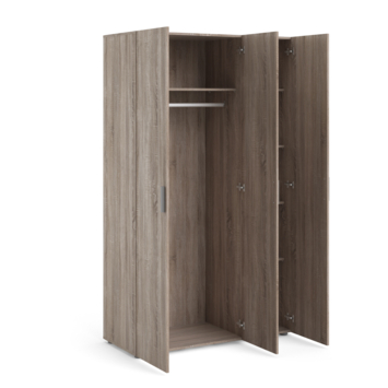 Met de kledingkast Pisa haal je veel opbergruimte in huis. Deze eenvoudig in elkaar te zetten 3-deurs kledingkast bevat 1 roede om kledij op te hangen en 5 legplanken. De kast is FSC gecertificeerd en past perfect in elke kamer en elk interieur. Ook verkrijgbaar in andere kleuren en formaten.