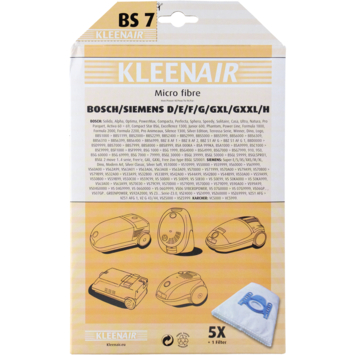 Kleenair stofzuigerzak Bosch/Siemens BS-7 5 stuks + 1 filter