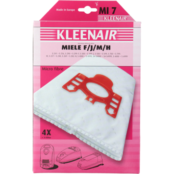 Kleenair Stofzuigerzak Miele F/J/M/H MI 7 4 stuks + 1 filter zijn gemaakt van microvezel. Stofzakken gemaakt van microvezel zijn steviger en filteren beter dan de papieren stofzuigerzakken. Ook blijft er meer zuigkracht over doordat er minder krachtverlies is door de microvezel.