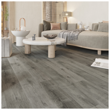 Kleurstaal click PVC Basic rechte stroken donkergrijs eiken houtlook