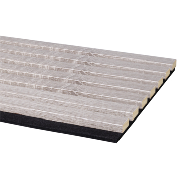 Kleurstaal lattenwand Decowall Acoustic grijs eiken 18x30 cm