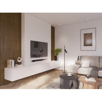 Met het kleurstaal van de lattenwand Decowall Acoustic rustiek eiken kan je thuis beoordelen of het wandpaneel past bij jouw huis en inrichting. Het kleurstaal hoort bij het paneel lattenwand 260x30cm (artikel 263632)