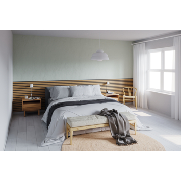 Met het kleurstaal van de lattenwand Decowall Essential brons eiken kan je thuis beoordelen of het wandpaneel past bij jouw huis en inrichting. Het kleurstaal hoort bij het paneel lattenwand  260x30cm (artikel 263658)
