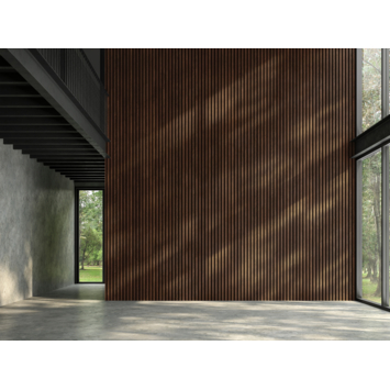 Met het kleurstaal van de lattenwand gerookt eiken kan je thuis beoordelen of het wandpaneel past bij jouw huis en inrichting. Het kleurstaal hoort bij het paneel lattenwand 260x52,6cm gerookt eiken, dikte 22mm (artikel 235465).