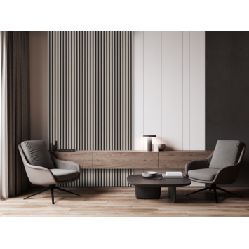 Met het kleurstaal van de lattenwand taupe kan je thuis beoordelen of het wandpaneel past bij jouw huis en inrichting. Het kleurstaal hoort bij het paneel lattenwand taupe 260x60,5cm (artikel 251012)