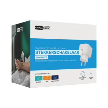 Deze Klik Aan Klik Uit stekkerdoos schakelaar ACC-3500 kun je in een stopcontact steken om een lamp of apparaat aan te sluiten die je dan draadloos kunt in- en uitschakelen, Dit in- en uitschakelen doe je met 1 tot maximaal 6 KlikAanKlikUit zenders. Dit zijn zender zoals zoals een afstandsbediening, draadloze wandschakelaar en draadloze bewegingsmelder. De witte stekkerdoos heeft een maximum belastbaar vermogen van 3500 watt. De ontvanger heeft een compact design, waardoor hij in elk interieur past. Het radiosignaal gaat door vloeren, wanden en deuren, zodat u hem ook uit het zicht kunt plaatsen.