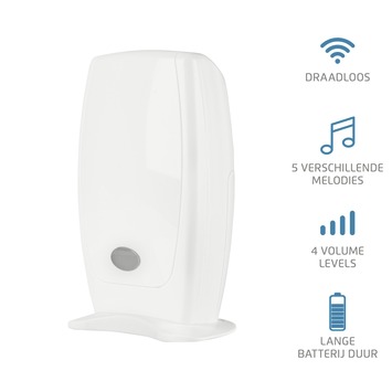 De deurbel heeft ook een led-lampje dat 15 seconden knippert als de drukknop wordt geactiveerd. Handig voor doven en slechthorenden. Je kunt deze set heel eenvoudig met extra draadloze deurbellen uitbreiden. Ook kun je de deurbel ook koppelen aan een Klik Aan Klik Uit bewegingsdetector of magneetcontact.