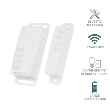 KlikAanKlikUit draadloos magneetcontact AMST-606 is te monteren op deurpost of raamkozijn, zonder installatiedraden. De zender werkt namelijk op batterijen. Zodra de deur of het raam geopend wordt, stuurt de zender een aansignaal naar 1 of meerdere KlikAanKlikUit ontvangers naar keuze. Zo kun je automatisch verlichting inschakelen of een draadloze gong activeren. De verlichting of apparatuur gaat uit zodra de deur of het raam weer gesloten wordt of na een ingestelde tijd (2-4-6-8-10-15-20 minuten). Deze sensor is ideaal voor montage op kelderkast, inloopkast, kledingkast of zolder. Het signaal heeft binnenshuis een bereik tot 30 meter. Het magneetcontact is compact en past in elk interieur.
