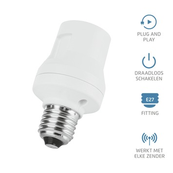 De verlichting is draadloos te schakelen met maximaal 6 Klik Aan Klik Uit zenders. De fitting schakelaar is geschikt voor lampen tot 100 Watt. Het bereik van de schakelaar reikt tot 30 meter en gaat door muren heen. Door de Plug & Play functie is deze schakelaar makkelijk te installeren.