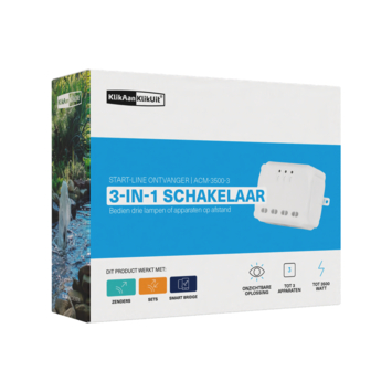 De KlikAanKlikUit Inbouwschakelaar ACM-3500-3 is een 3-in-1 inbouwschakelaar om verlichting of apparatuur tot 3500 watt draadloos aan/uit te schakelen.