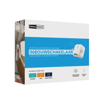 Deze KlikAanKlikUit Inbouwschakelaar ACM-2000 kun je netjes inbouwen in een bestaande wand- of plafonddoos, zodat je in combinatie met een afstandsbediening, draadloze wandschakelaar of draadloze bewegingsmelder, de verlichting of apparatuur kunt in- en uitschakelen.