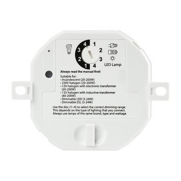 - Geschikt voor dimbare led-verlichting en dimbare spaarlampen (van 3 tot 50 Watt) en alle overige dimbare verlichting (van 20 tot 200 Watt).