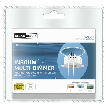 De KlikAanKlikUit Multi Inbouwdimmer ACM-100 kun je gebruiken om aangesloten verlichting te dimmen vanaf elke plek in huis. De dimmer is netjes weg te werken in een bestaande wand- of plafonddoos, in een verlaagd plafond of in een kast of meubel.