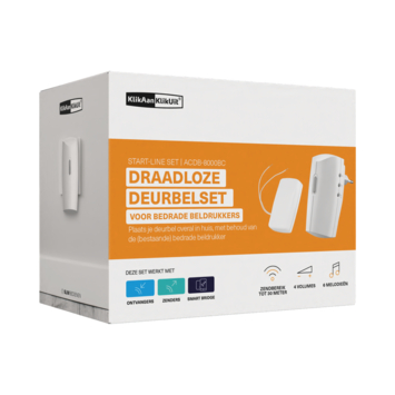 Haal meer uit je deurbel! Combineer je bestaande beldrukker met het gemak van een draadloze deurbel van KlikAanKlikUit. Koppel de meegeleverde zender aan je bestaande beldrukker, plaats de draadloze deurbel op elke gewenste plek in huis en kies uit een van de zes melodieën.