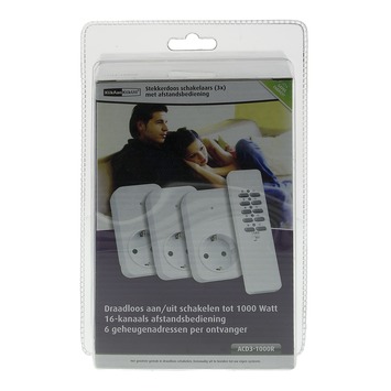 De KlikAanKlikUit-schakelset ACD3-1000R bestaat uit 3 stekkerdoosschakelaars die je heel eenvoudig in een stopcontact naar keuze plaatst. Hierop sluit je een lamp of apparaat aan met een maximaal wattage van 1000watt. Op deze manier kun je draadloos 3 lampen of apparaten aan- en uitschakelen. Met de meegeleverde afstandsbediening kunt je schakelaar draadloos bedienen daarnaast kan dat met nog 5 andere KlikAanKlikUit-zenders (nietmeegeleverd). Denk aan een draadloze wandschakelaar of bewegingsmelder. De afstandsbediening maakt het mogelijk in totaal 16 KlikAanKlikUit-ontvangers afzonderlijk van elkaar te bedienen. Met één druk op de G-knop schakel je alle ontvangers tegelijk aan of uit. Combineer deze KlikAanKlikUit-schakelset met andere producten uit de KlikAanKlikUit-serie die je bij Karwei vindt. Installeren is heel eenvoudig, je hebt geen installateur nodig; plug and go.