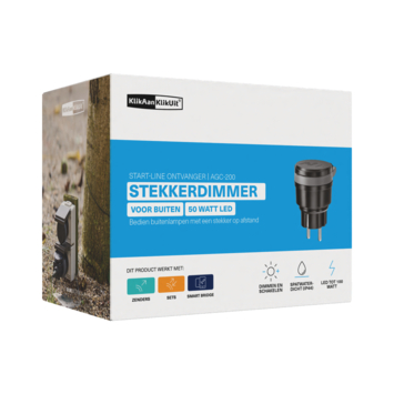 De KlikAanKlikUit Stekkerdoos AGC-200 inclusief Dimmer voor Buiten is een draadloze dimmer voor gebruik buitenshuis. Dat betekent dat hij spatwaterdicht is.