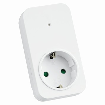 Deze KlikAanKlikUit stekkerdoos schakelaar ACD-3500 kun je in een stopcontact steken om een lamp of apparaat aan te sluiten die je dan draadloos kunt in- en uitschakelen met 1 tot maximaal 6 KlikAanKlikUit zenders, zoals een afstandsbediening, draadloze wandschakelaar en draadloze bewegingsmelder. Deze witte stekkerdoos heeft een maximum belastbaar vermogen van 3500 watt.