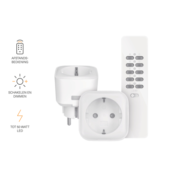 Plaats de stekkerdoosschakelaar in het stopcontact en sluit hier een dimbare lamp op aan. Met maximaal 6 KlikAanKlikUit-zenders kun je nu de verlichting bedienen. De KlikAanKlikUit KlikAanKlikUit Stopcontactdimmer 2 stuks met Afstandsbediening ACC-250R is geschikt voor het dimmen van dimbare led-verlichting en dimbare spaarlampen (van 3 tot 50 watt) en alle overige dimbare verlichting (van 3 tot 250 watt). De ontvanger is compact en past in vrijwel elk interieur. Deze KlikAanKlikUit stekkerdoos kun je natuurlijk combineren met andere KlikAanKlikUit-producten. In de verpakking vind je 2 dimmers.