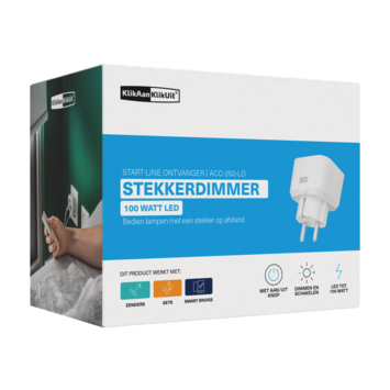 Je plaatst een stekkerdoosdimmer in een stopcontact naar keuze en sluit hier dimbare verlichting op aan. Werkt met KlikAanKlikUit Start Line-afstandsbedieningen, wandschakelaars, sensoren of ICS-2000 (App).