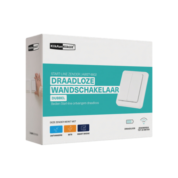 De dubbele draadloze KlikAanKlikUit-wandschakelaar AWST-8802 kun je op elke gewenste plek binnenshuis plaatsen. Je koppelt de zender met Klik Aan Klik Uit-ontvangers naar keuze. Zo kun je met beide knoppen op de schakelaar verlichting, apparatuur, zonwering, rolluiken of een deurbel bedienen. De schakelaar werkt op batterijen, dat betekent dat je hem heel eenvoudig overal kunt bevestigen zonder gedoe met draden of hoge spanning. Ook ideaal en veilig dus voor gebruik in badkamer en toilet.