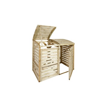 Een simpele oplossing om de containers op te bergen is deze mooie containerkast. De kast belemmerd de functionaliteit van een container niet, maar zorgt er wel voor dat hij minder zichtbaar is in een tuin. Hierdoor oogt de tuin strak en netjes.
