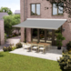 Het knikarmscherm Staccato is ideaal als terrasscherm. Door de constructie kan je gewoon onder het scherm doorlopen. Dit scherm is uitgevoerd met een half open cassette. De aluminium delen zijn zilver metallic en de zijplaten van het scherm zijn uitgevoerd in antraciet. De motor kan bediend worden met de bijgeleverde opbouwschakelaar.