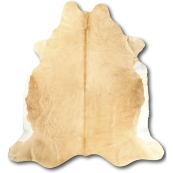 Mooi getekende glanzende blonde koeienhuid vloerkleed 3 mm 180x200 cm. De huid is 100% natuurlijk en soepel gelooid. De Argentijnse koeienhuid is van nature slijtvast en zal jarenlang meegaan. Littekens en wisselingen in kleur en afmeting vormen een natuurlijk onderdeel van het leer en maken elke koeienhuid uniek! De koeien zijn reeds geslacht voor het vlees, de vachten zijn dus een restproduct. Omdat het een dierlijk product is kan de huid dierlijke kenmerken bevatten zoals, krassen, eeltplekken en een lichte geur kan voorkomen.
