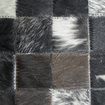 Het koeienhuid vloerkleed zwart/grijs geblokt 10 mm 120x180 cm is een uniek vloerkleed. Deze vloerkleden zijn handgeweven, hierdoor is geen een vloerkleed hetzelfde! Het kleed is speciaal behandeld, zodat haren niet uitvallen. Omdat het een natuurlijk product betreft kunnen kleuren en afmetingen afwijken. Daarnaast kan de huid dierlijke kenmerken bevatten zoals, krassen, eeltplekken en een lichte geur kan voorkomen.