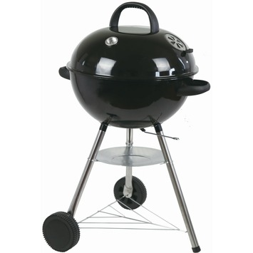 De Kogelbarbecue Deluxe zwart 56 centimeter is een grote, functionele barbecue die werkt op houtskool. De barbecue heeft een grilloppervlak met een diameter van 56 centimeter, waardoor je makkelijk veel eten tegelijk kunt grillen. De hoogte van deze barbecue is 75 centimeter (zonder deksel). Door de poten, waarvan twee van wielen zijn voorzien, staat de barbecue stabiel en is hij bovendien eenvoudig te verplaatsen. Deze kogelbarbecue heeft een design van zwart metaal. Ook beschikt de barbecue over een asvanger, waardoor je de barbecue eenvoudig kunt schoonmaken. Tevens wordt een warmhoudrooster meegeleverd en is de luchttoevoer regelbaar. Kogelbarbecue Deluxe zwart 56 centimeter is 109 centimeter hoog, 67 centimeter breed en 57 centimeter diep.