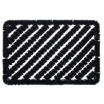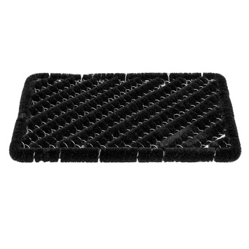 De borstelmat 40x60cm zwart is een stevige mat gemaakt van staal en kokosvezels. De mat heeft dankzij de ruwe samenstelling een zeer goede schrapende werking en verwijderd zowel grof als fijn vuil van je schoenzolen. Zo blijft vuil achter op de mat en blijven de vloeren in huis schoon. Afmeting: 40x60cm. Kleur: zwart