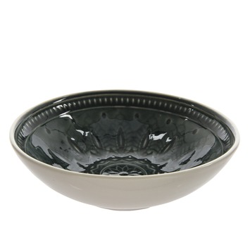 Presenteer uw hapjes op deze prachtige aardewerk kom met print in de kleur donker groen. U kunt deze kom gebruiken als fruitschaaltje, voor een kleine salades of andere kleinere gerechtjes. Deze kom is erg modieus en Deze kom is erg modieus en is een echt eye-catcher op tafel. Kom aardewerk print donker groen Ø17 cm heeft een diameter van 17 cm en is 6 cm hoog. Deze kom is ook beschikbaar in de maat Ø31 cm met een hoogte van 8 cm en in de kleur mint groen.