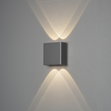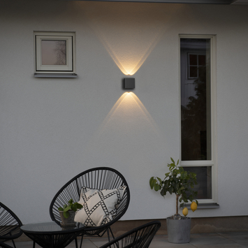 Mooie compacte design 230V buitenlamp Chieri 7891 met 2x2 1W geintegreerde 3000K warmwitte Fish Eye PowerLED 230V van het Zweedse premium merk Konstsmide. Zeer fraai up en down patroon en sfeervol lichteffect op de achterwand. Gelakt aluminium in de kleur antraciet. Eenvoudig aan te sluiten op 230V lichtnet en geschikt voor energiezuinig sfeervol verlichten van je huis en buitenruimte. Reinig het armatuur elk kwartaal voor een optimale levensduur van de lak. De toegepaste LED driver van premium kwaliteit zorgt voor een stabiele output van de lichtbron en een lange levensduur van de LED verlichting. Het verbruik van slechts 6W en een output van 400 lumen is zeer energiezuinig. De lichtbron hoeft tijdens de levensduur van de lamp niet te worden vervangen. De bundel heeft een reikwijdte van 2-3m zowel up als down. Gebruik deze IP54 lamp buiten als decoratieve of veiligheidsverlichting bij de voordeur, aan de gevel, op het balkon, aan de erfafscheiding, carport, schuur of tuinhuis. Dit armatuur heeft een Europees veiligheidskeurmerk en een EMC keurmerk. Dit houdt in dat de lamp geen storing veroorzaakt op andere elektronische apparatuur en draadloze netwerken als WiFi en Bluetooth.