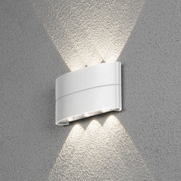 De Konstsmide buitenlamp Chieri mat wit is gemaakt van aluminium gelakt in de kleur matwit. Deze moderne buitenlamp geeft een sfeervolle uitstraling op de muur naast je deur of als accentverlichting in de tuin. Het warm witte licht zorgt voor een mooi effect dat zowel naar boven als naar onder schijnt. Met de zes geïntegreerde ledspotjes en de goede kwaliteit van het armatuur ben je verzekerd van een lange levensduur.