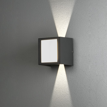 De Konstsmide buitenlamp Cremona verstelbaar antraciet is een perfecte lamp voor accent en sfeerverlichting rondom je huis. Deze fraaie buitenlamp gemaakt van aluminium en gelakt in de kleur donkergrijs is voorzien van transparant glas. Deze lamp schijnt zowel naar boven als naar onder en de lichtbundel is afzonderlijk verstelbaar. Dit geeft een sfeervol effect voor bijvoorbeeld je terras. De geïntegreerde ledlamp is energiezuinig en gaat zo'n 20.000 uur mee. De lamp heeft een IP waarde van 54 en is daarmee stofdicht en kan tegen een plensbui, hierdoor heeft de lamp een zeer lange levensduur.