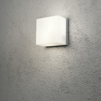 De Konstsmide buitenlamp San Remo voor wand en plafond grijs opaal is een functioneel modern armatuur dat zowel als wandlamp of plafonniere vrijwel overal aan en rondom huis toepasbaar is. Het tijdloze ontwerp en materiaal komt zowel aan gevel, garage, blokhut, carport, serre, erfafscheiding of terras goed tot zijn recht.