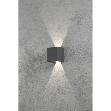 De Konstsmide buitenlamp Cremona Powerled 13,5 cm is een perfecte lamp voor accent en sfeerverlichting rondom je huis. Deze fraaie wandlamp gemaakt van aluminium en gelakt in de kleur donkergrijs is voorzien van transparant glas. Deze lamp schijnt zowel naar boven als naar onder en de lichtbundel is afzonderlijk verstelbaar. Dit geeft een sfeervol effect voor bijvoorbeeld je terras. De geïntegreerde ledlamp kan niet vervangen worden, maar zijn energiezuinig en gaan zo?n 30.000 uur mee. De lamp is bestand tegen alle weersinvloeden, hierdoor heeft de lamp een zeer lange levensduur.